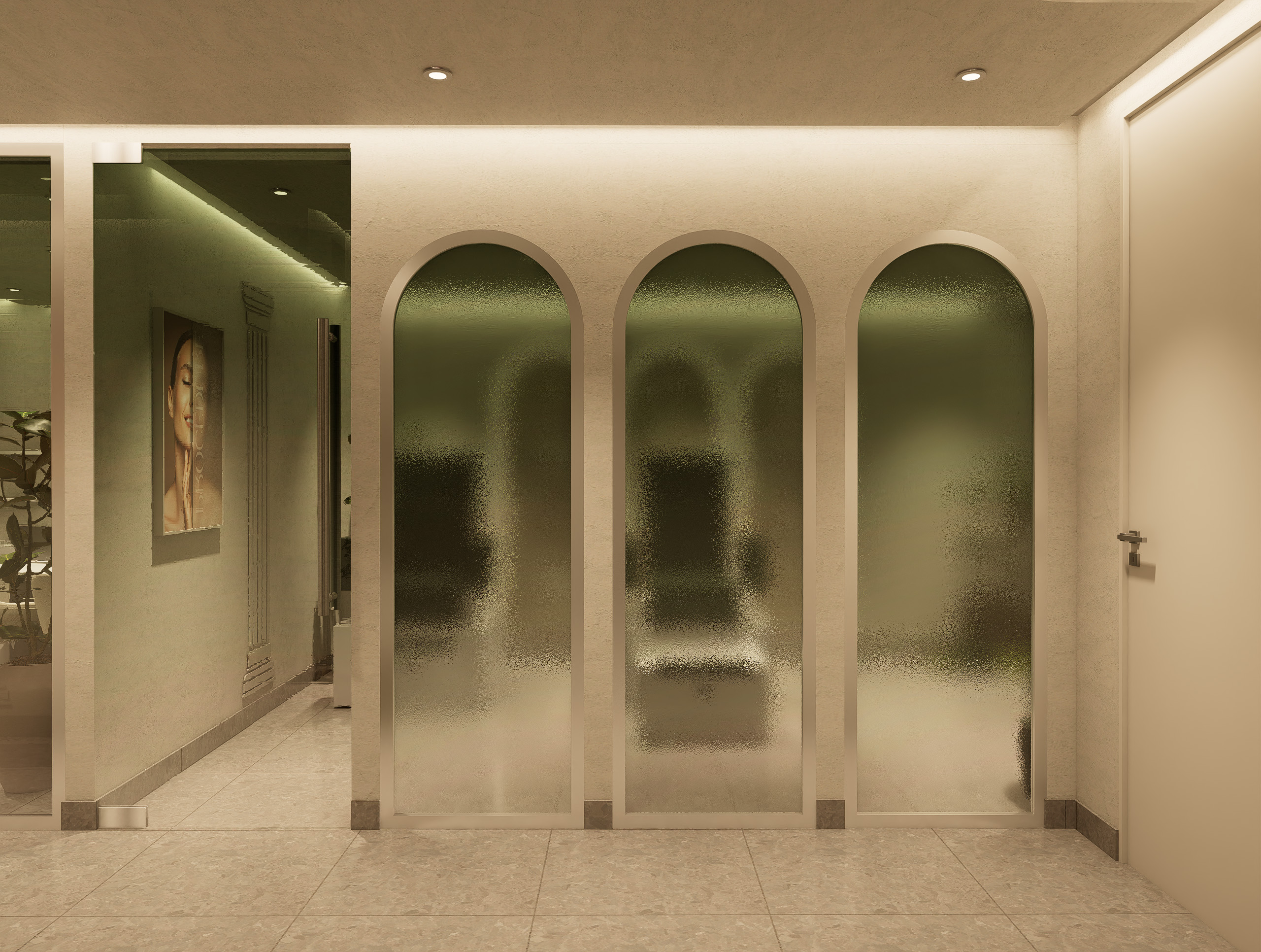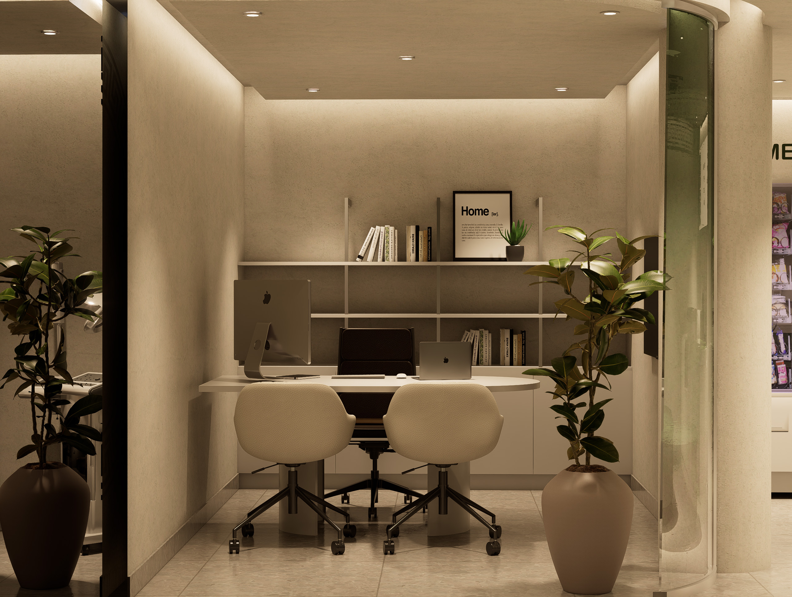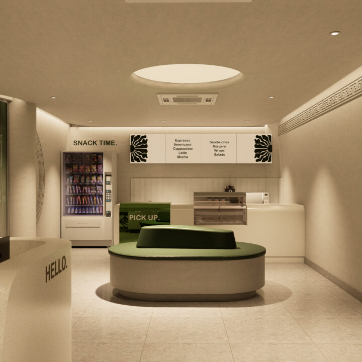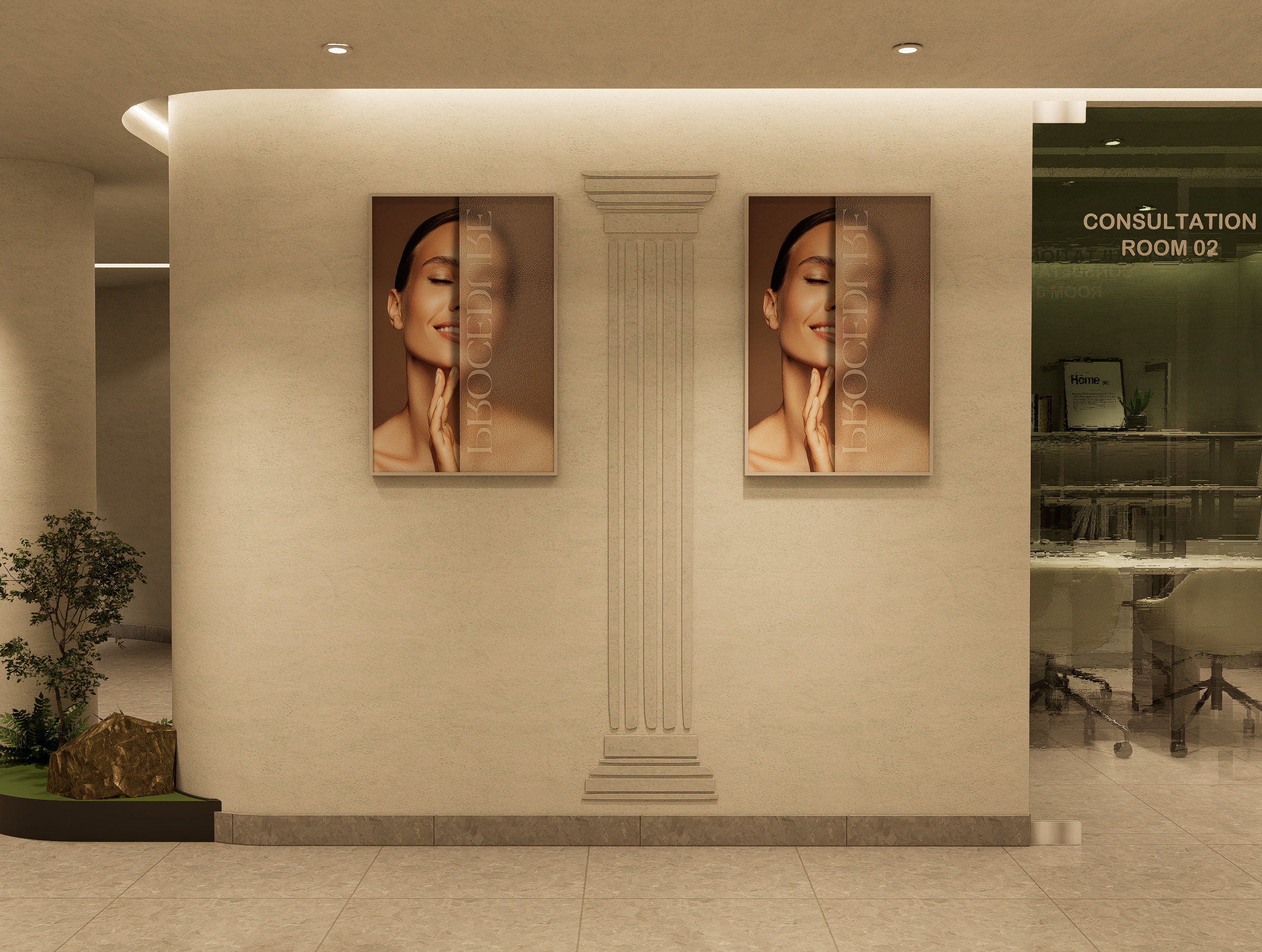 • Subtle brand accents on walls, mirrors, and display accessories