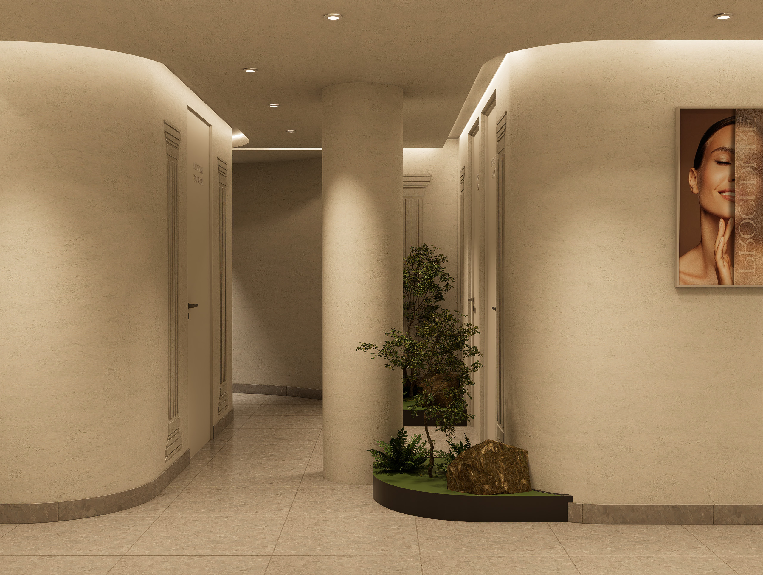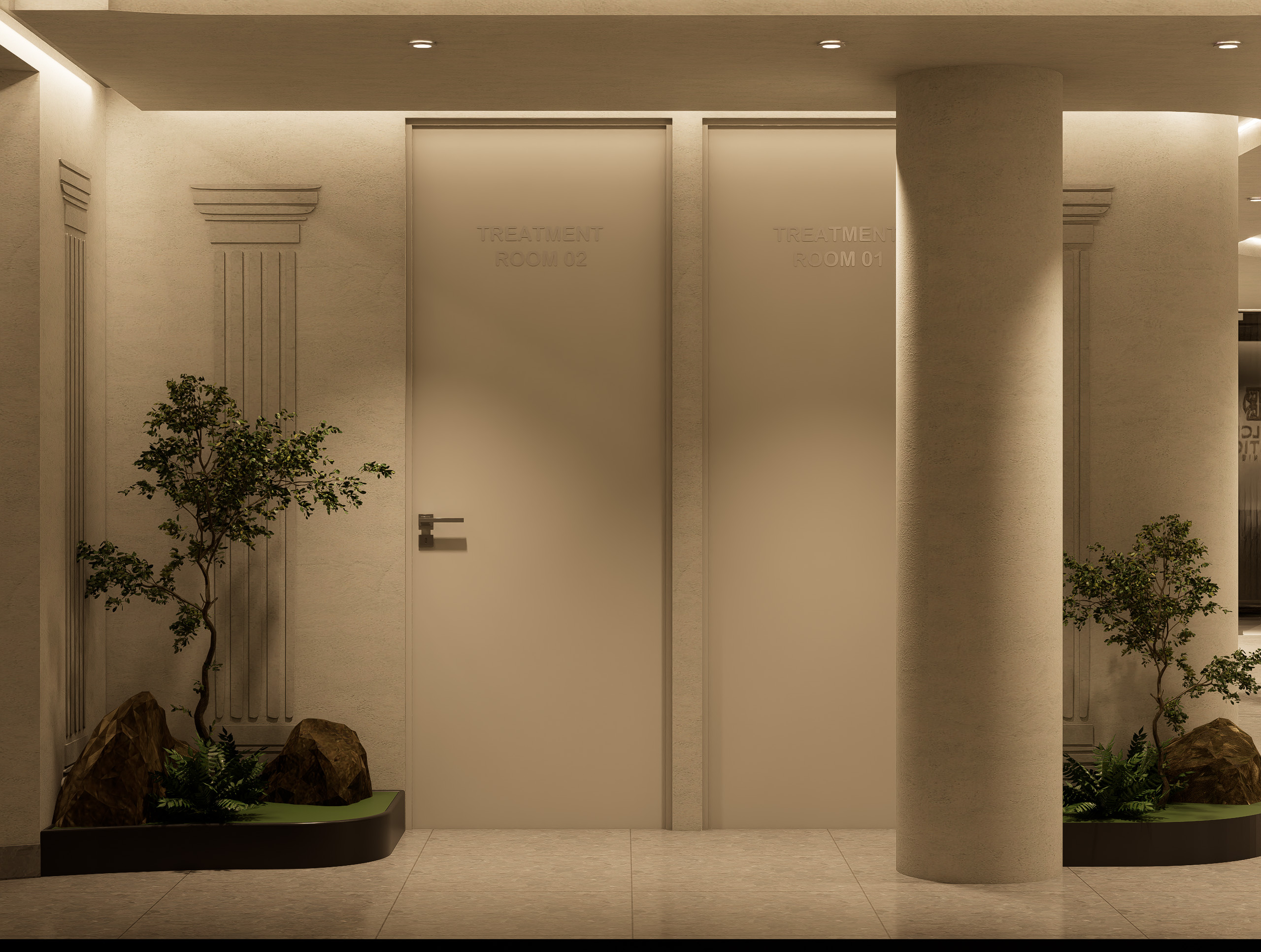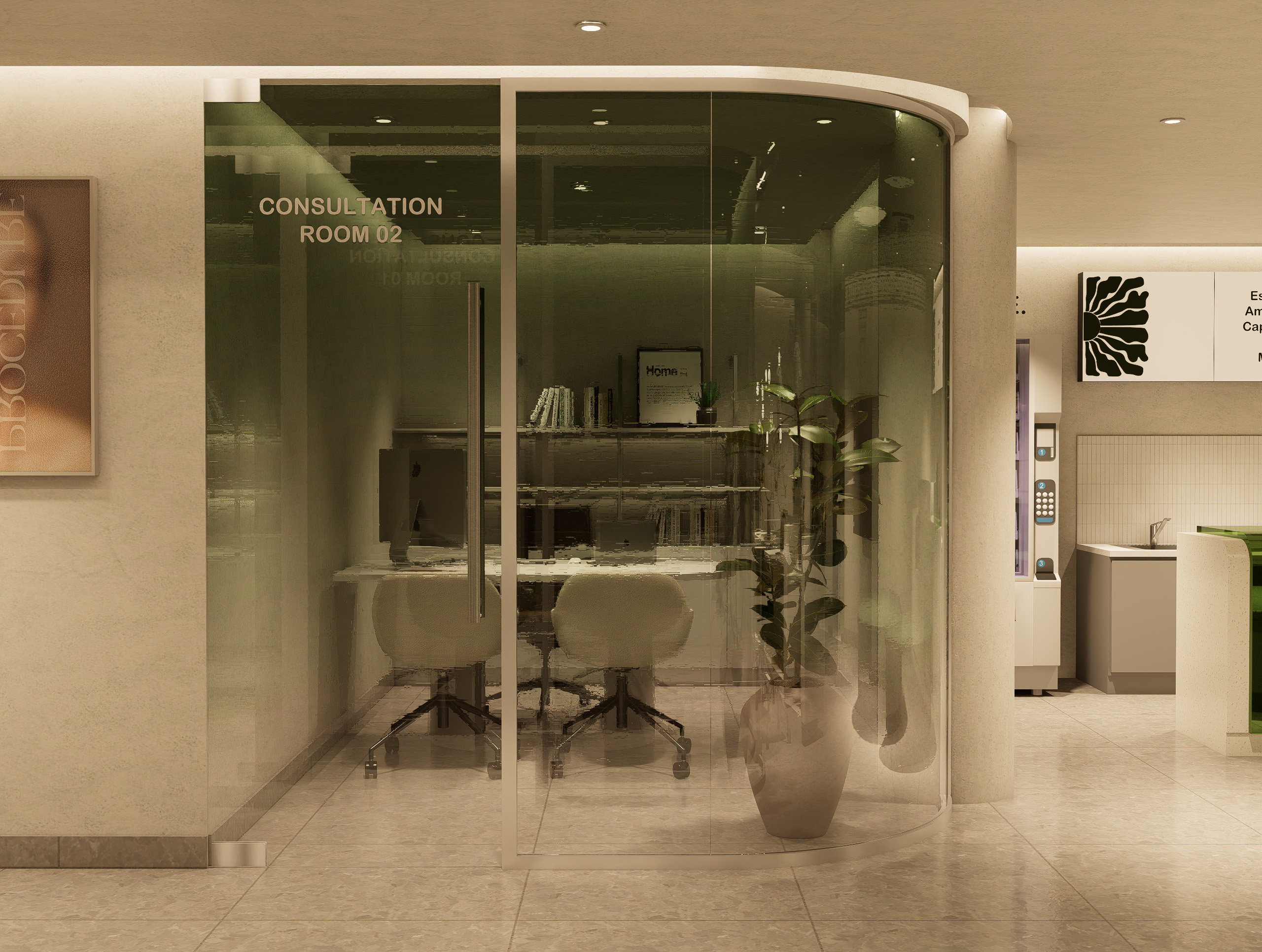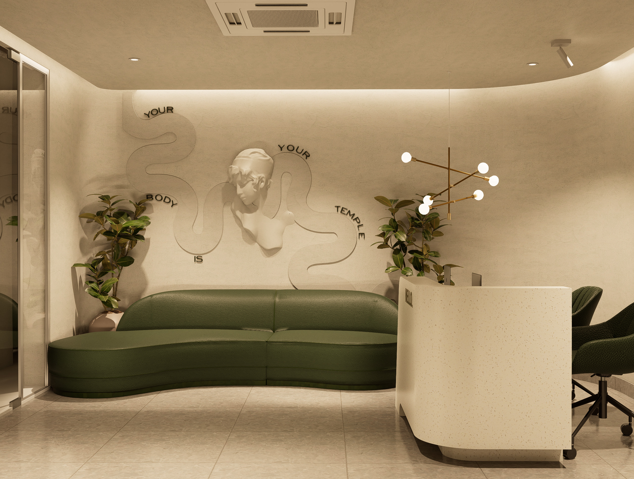 • Subtle brand accents on walls, mirrors, and display accessories