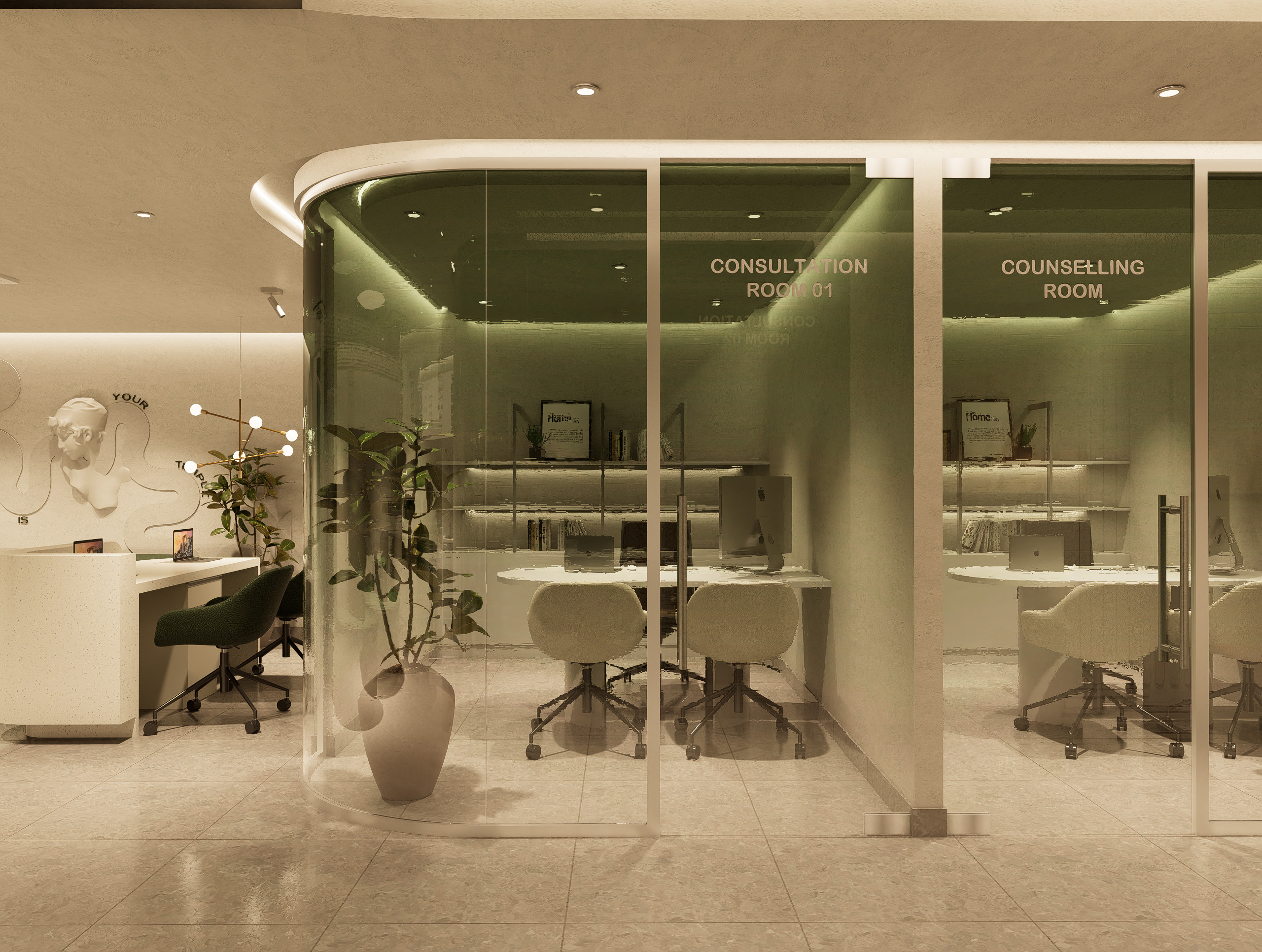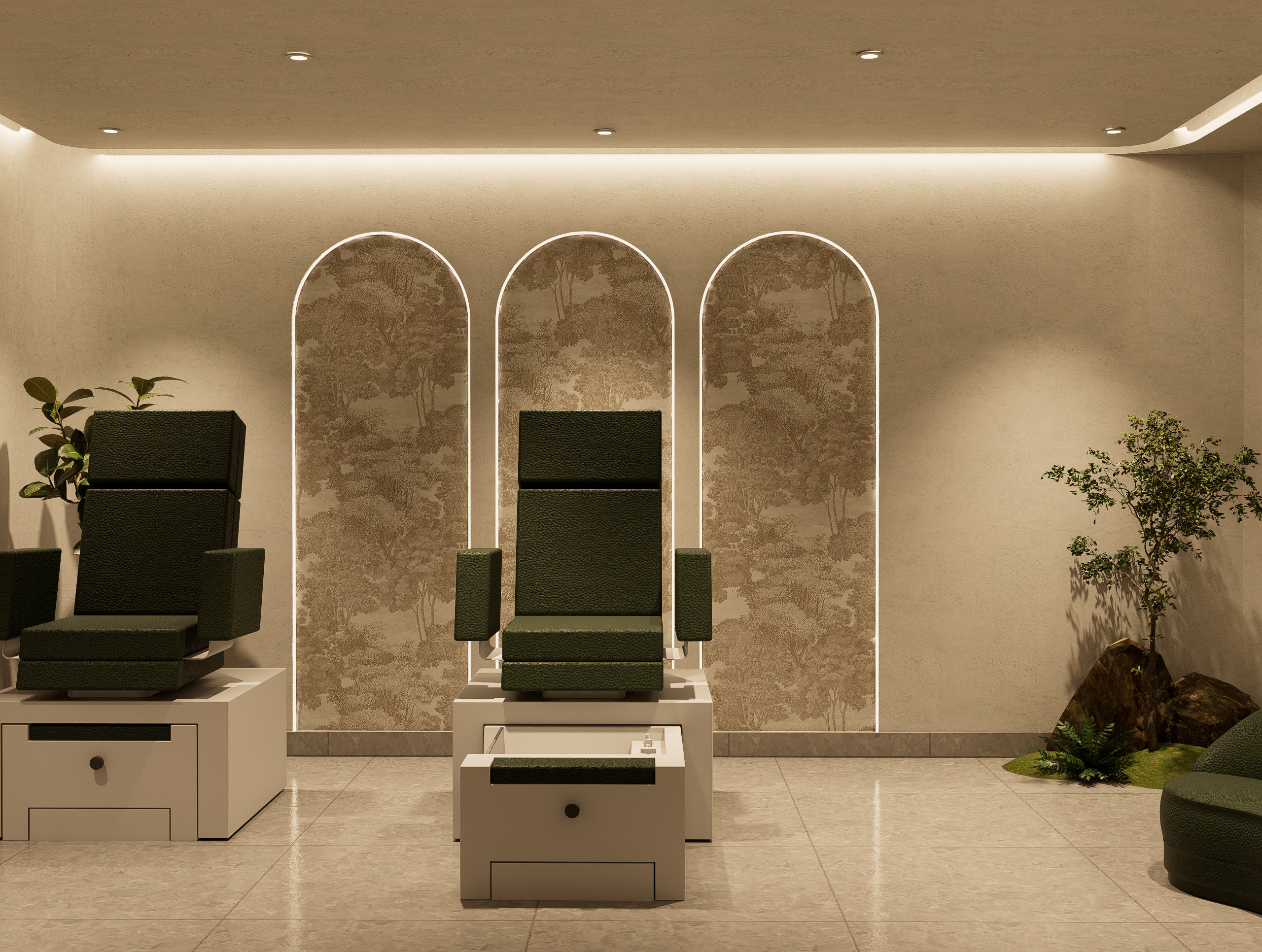 • Comfort-focused trial zones with plush seating and privacy features