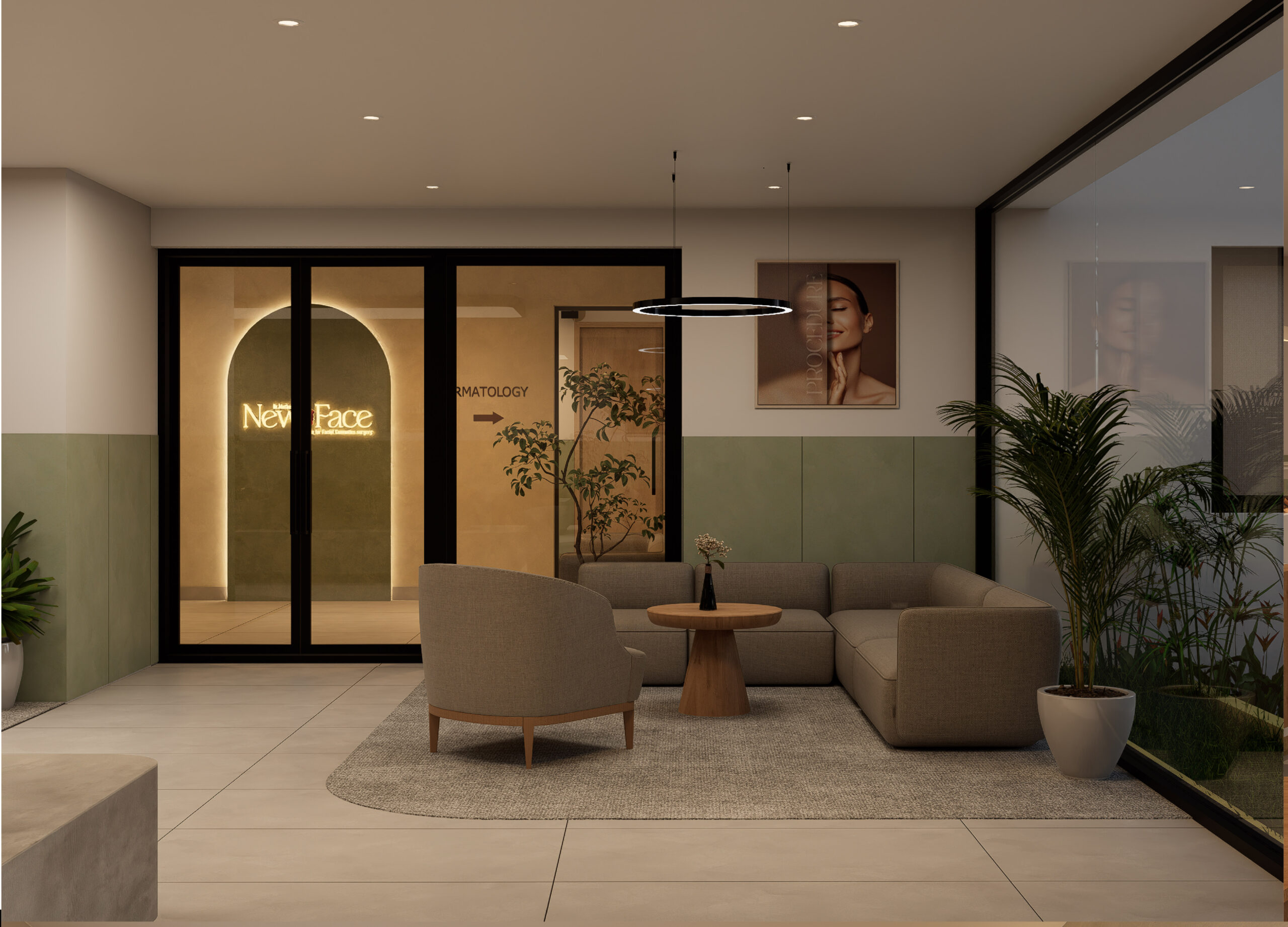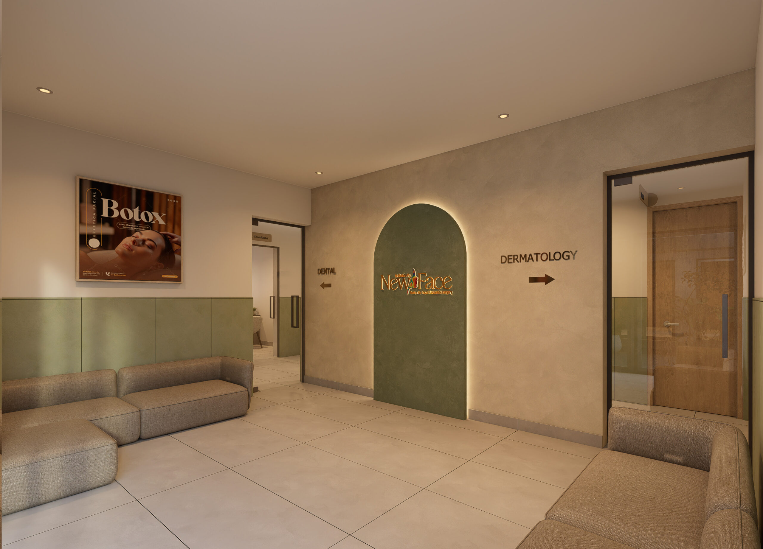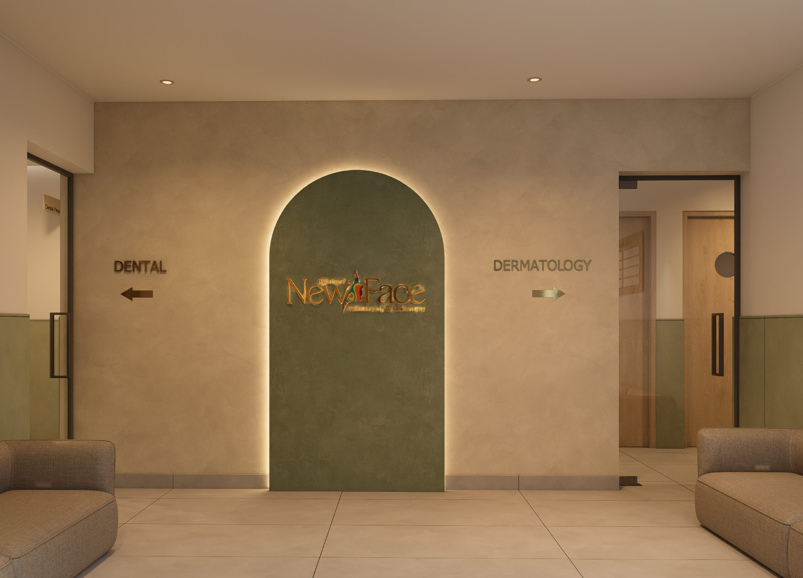 New Face is envisioned as a premium dermatology, aesthetic, and dental care facility designed to provide a calm, luxurious, and reassuring patient experience. The overall interior language reflects sophistication, warmth, and understated elegance while maintaining the functionality and hygiene standards required for a healthcare environment.