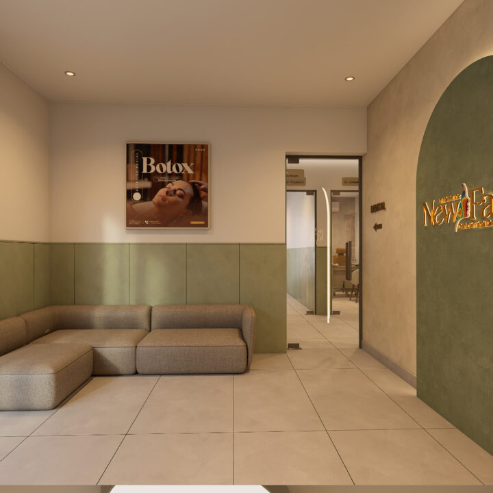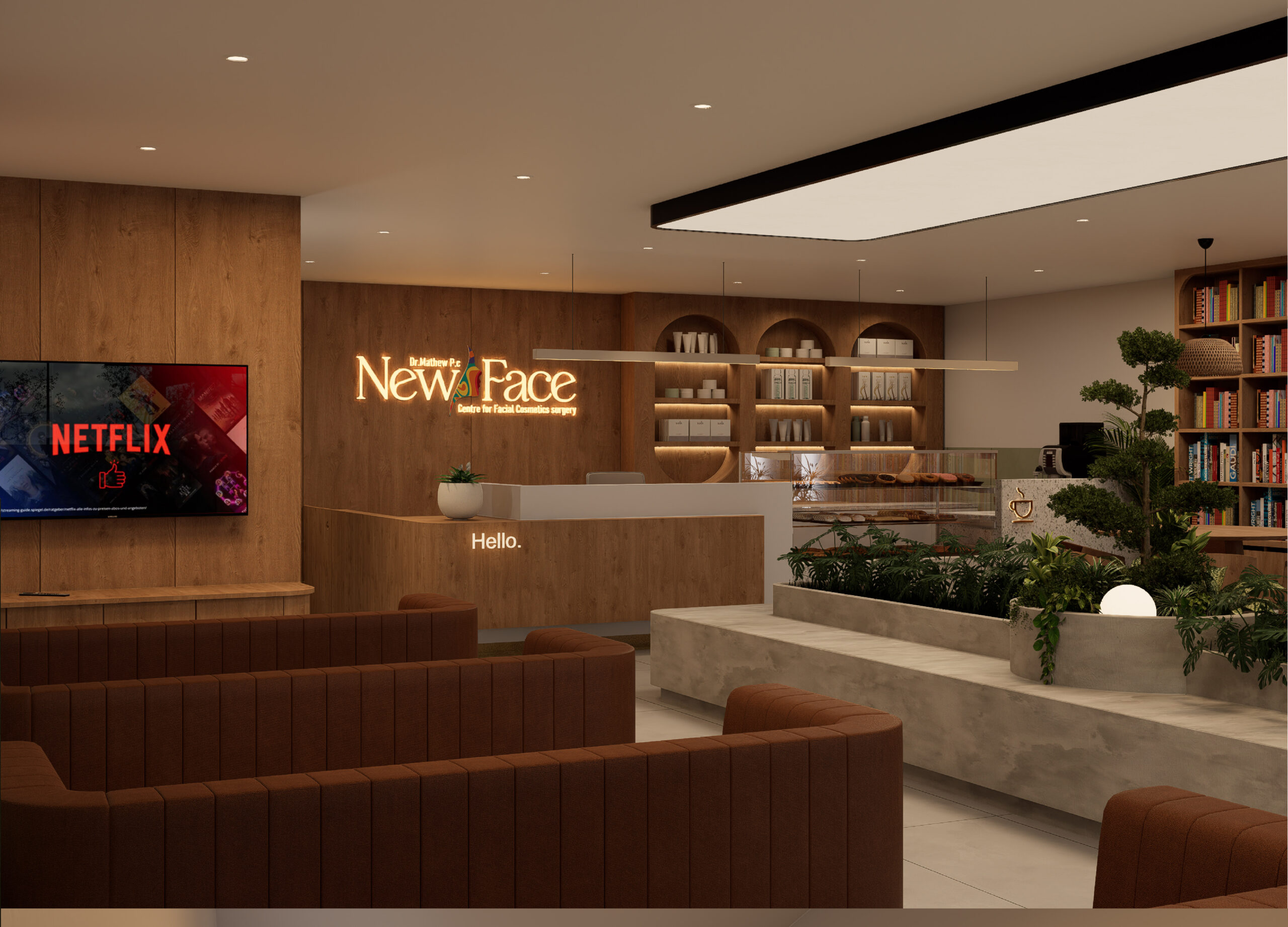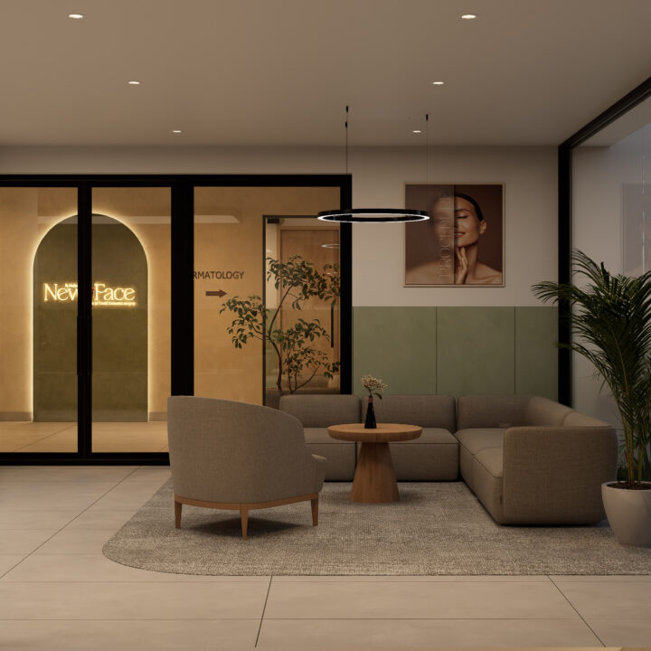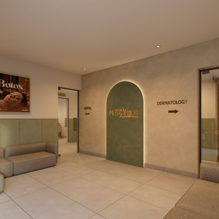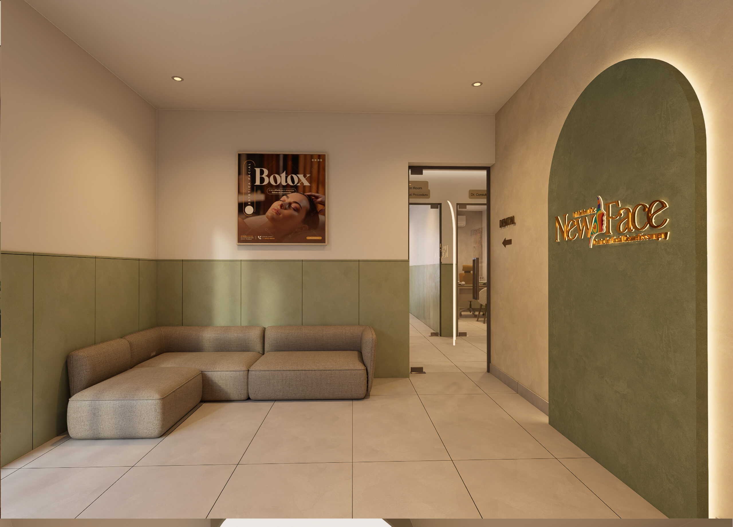 New Face is envisioned as a premium dermatology, aesthetic, and dental care facility designed to provide a calm, luxurious, and reassuring patient experience. The overall interior language reflects sophistication, warmth, and understated elegance while maintaining the functionality and hygiene standards required for a healthcare environment.