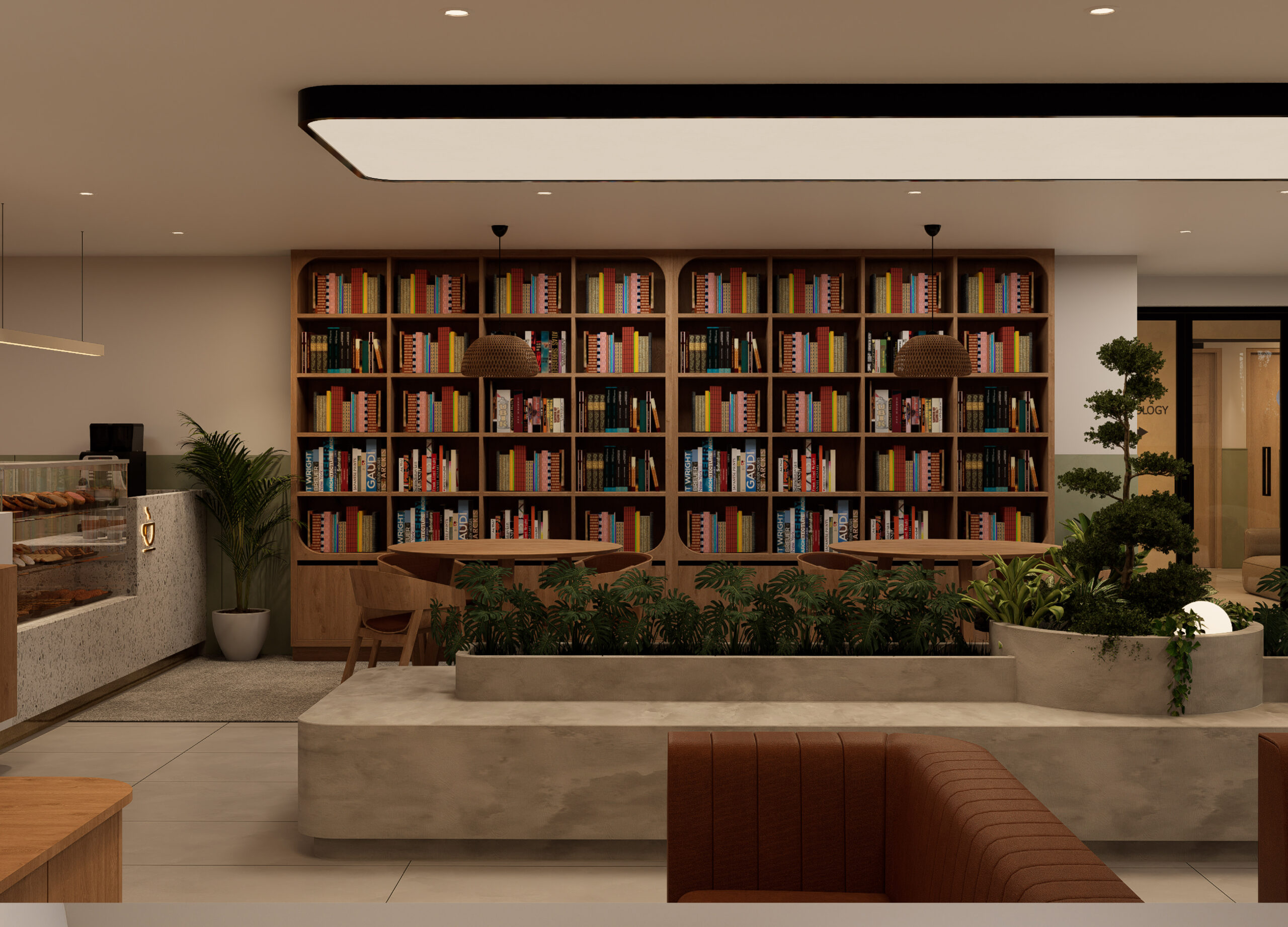 The project uses a soft and earthy palette that supports the wellness-oriented nature of the space.