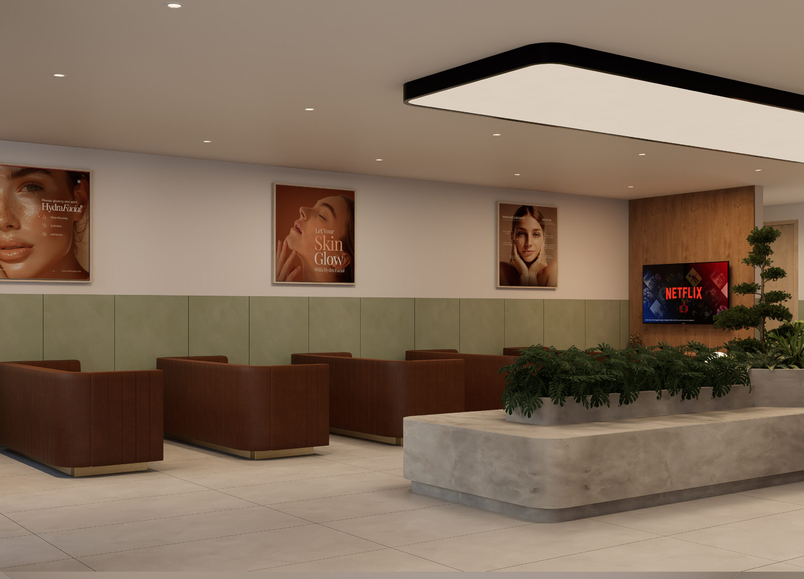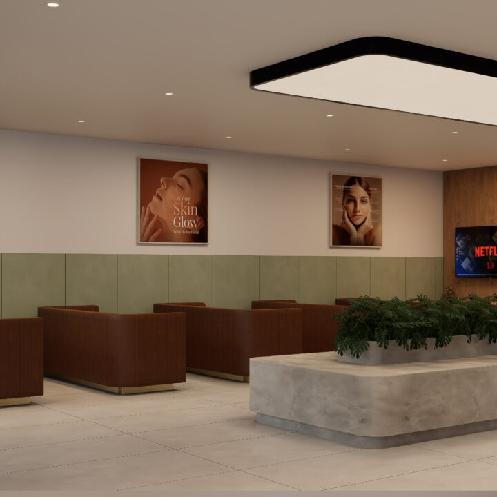 The waiting lounge is designed to feel elegant, calm, and spacious while supporting patient comfort during waiting times.