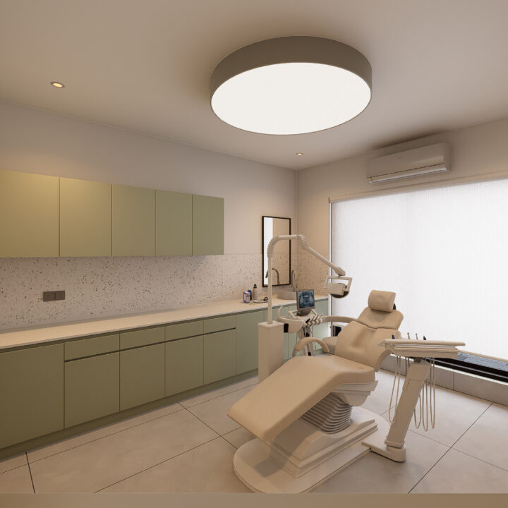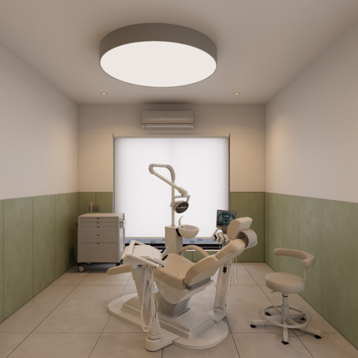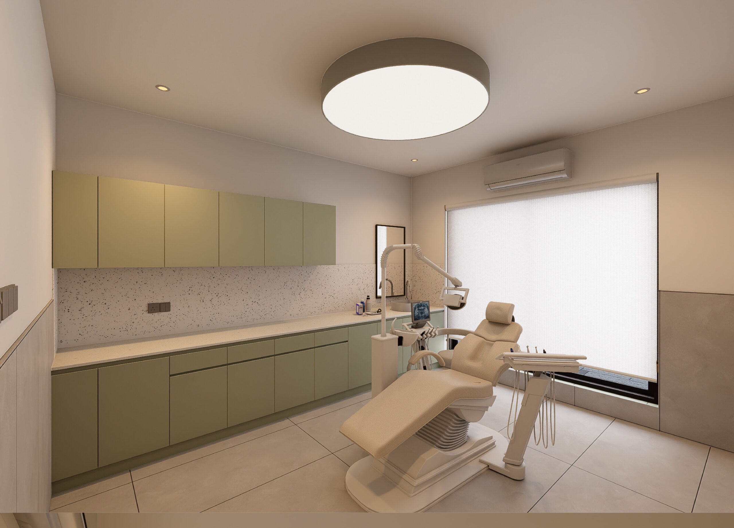 The dental treatment rooms are designed to be bright, hygienic, and visually calming.