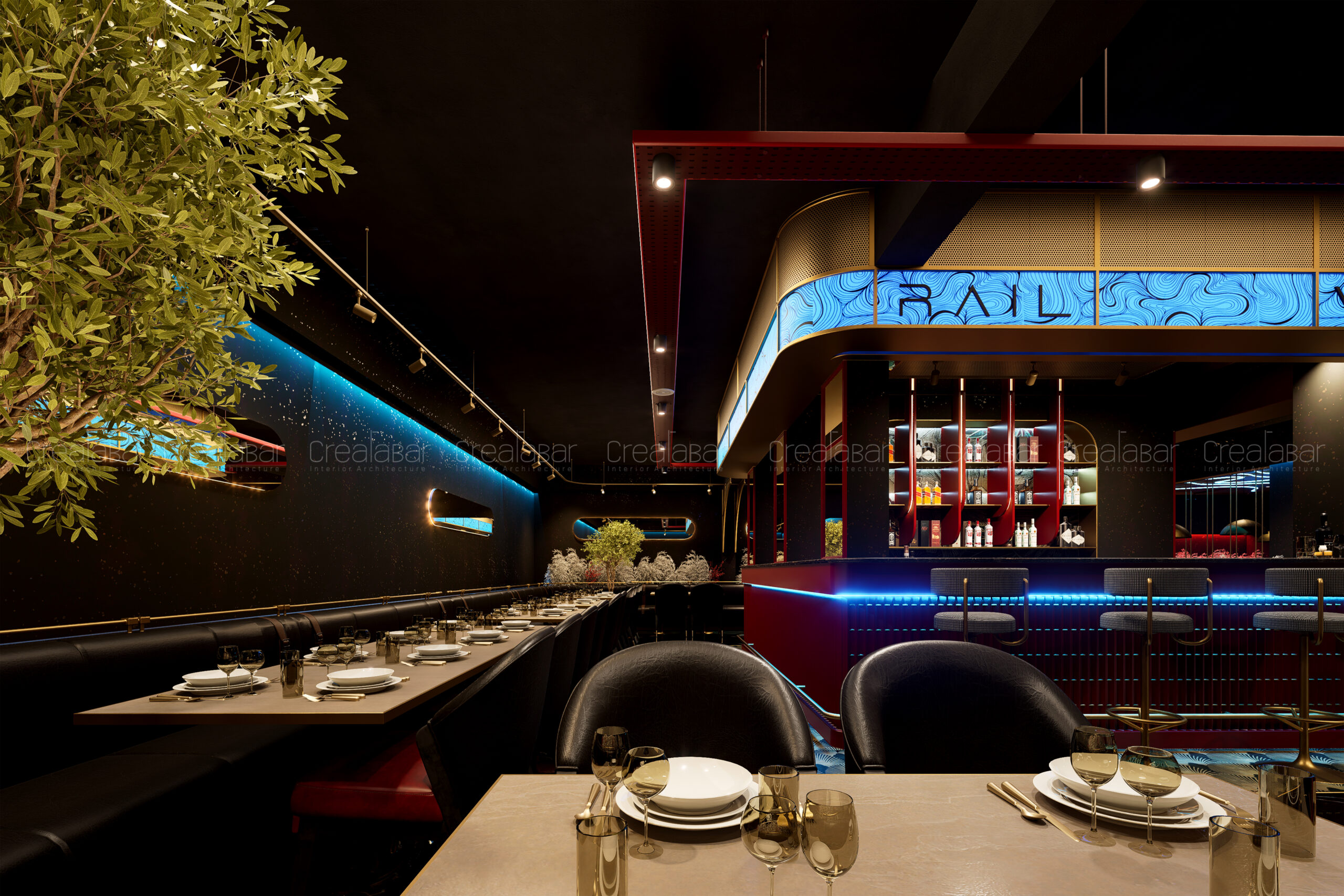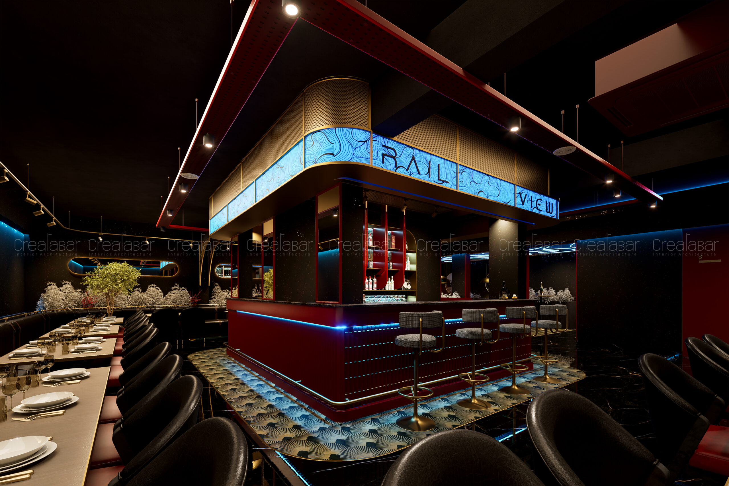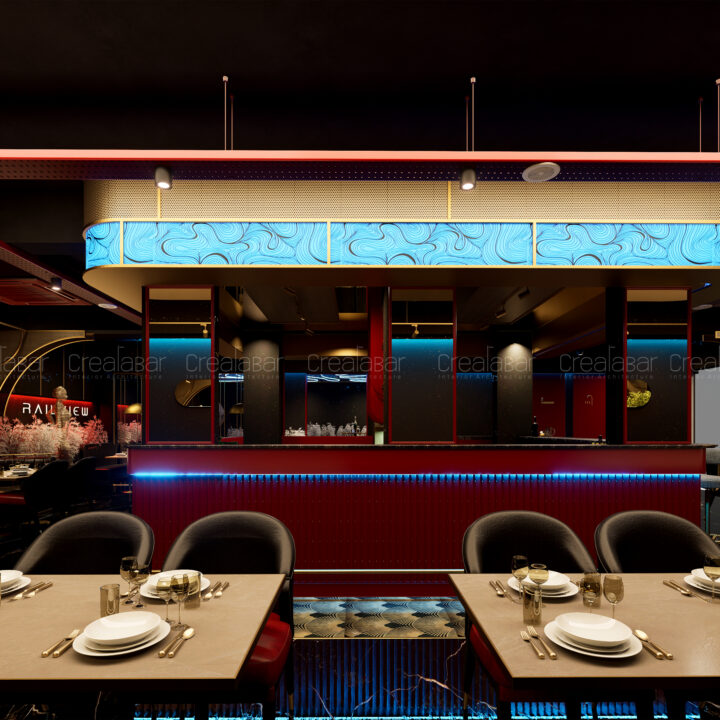 Railview is envisioned as an immersive fine-dining restaurant and bar that blends luxury, drama, and sensory storytelling. The design aims to create a bold yet refined environment where dining becomes an experience—evoking movement, rhythm, and urban nightlife energy while maintaining comfort and sophistication.