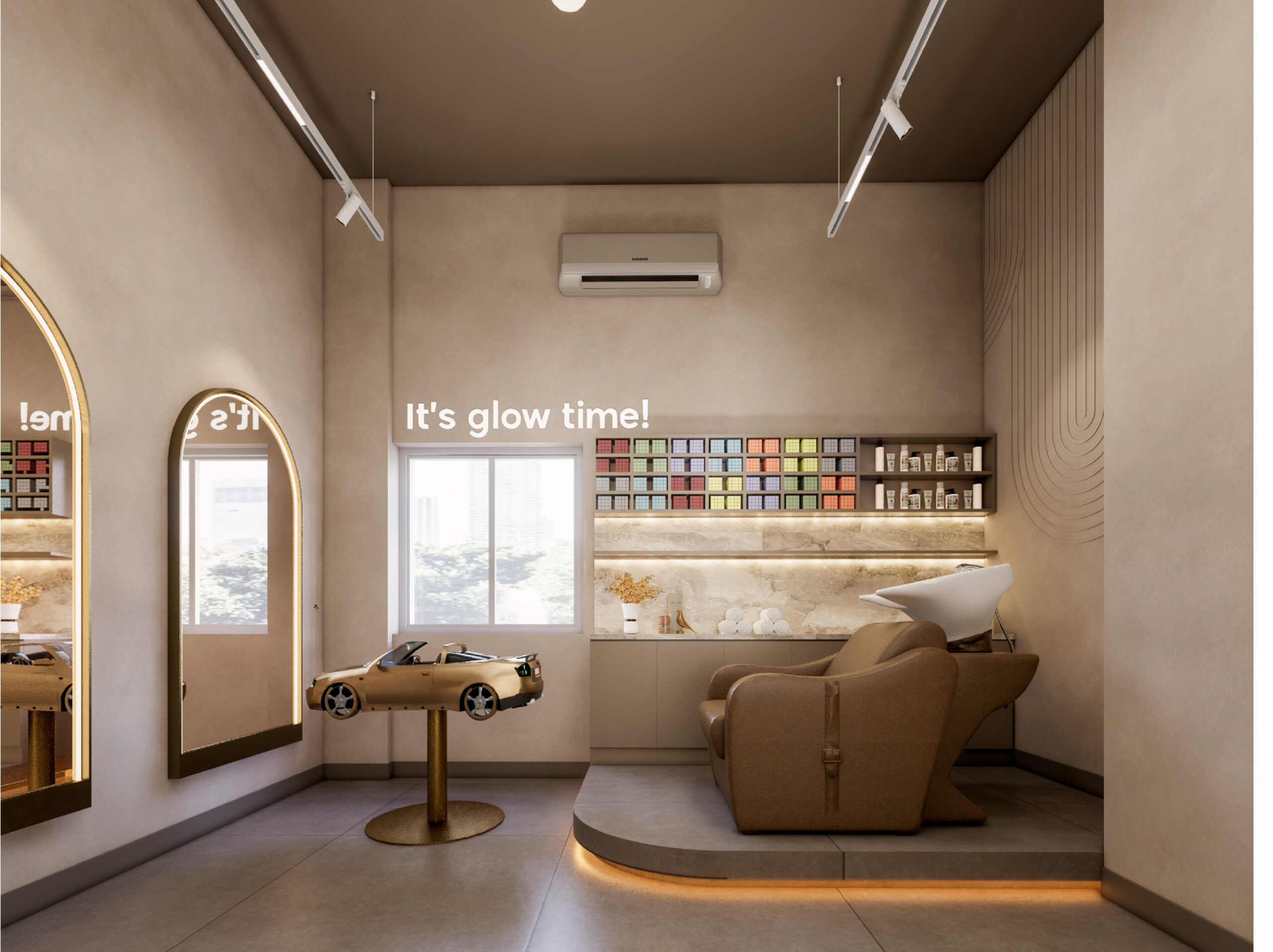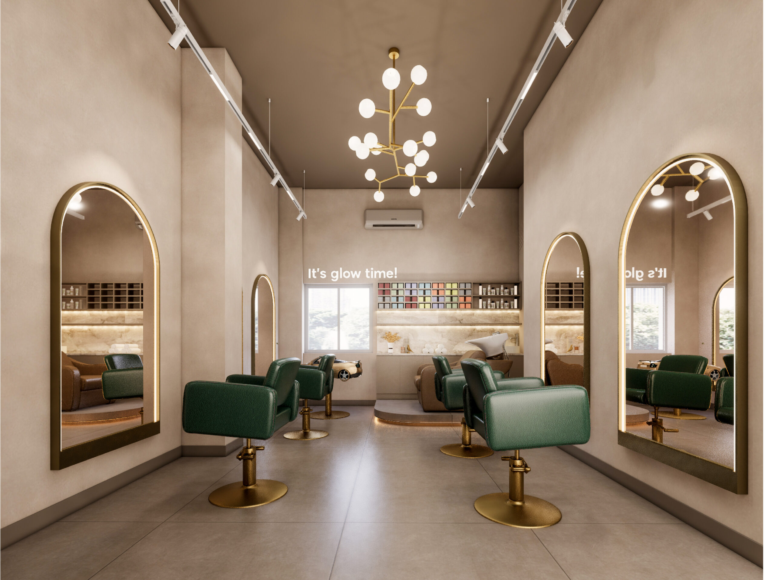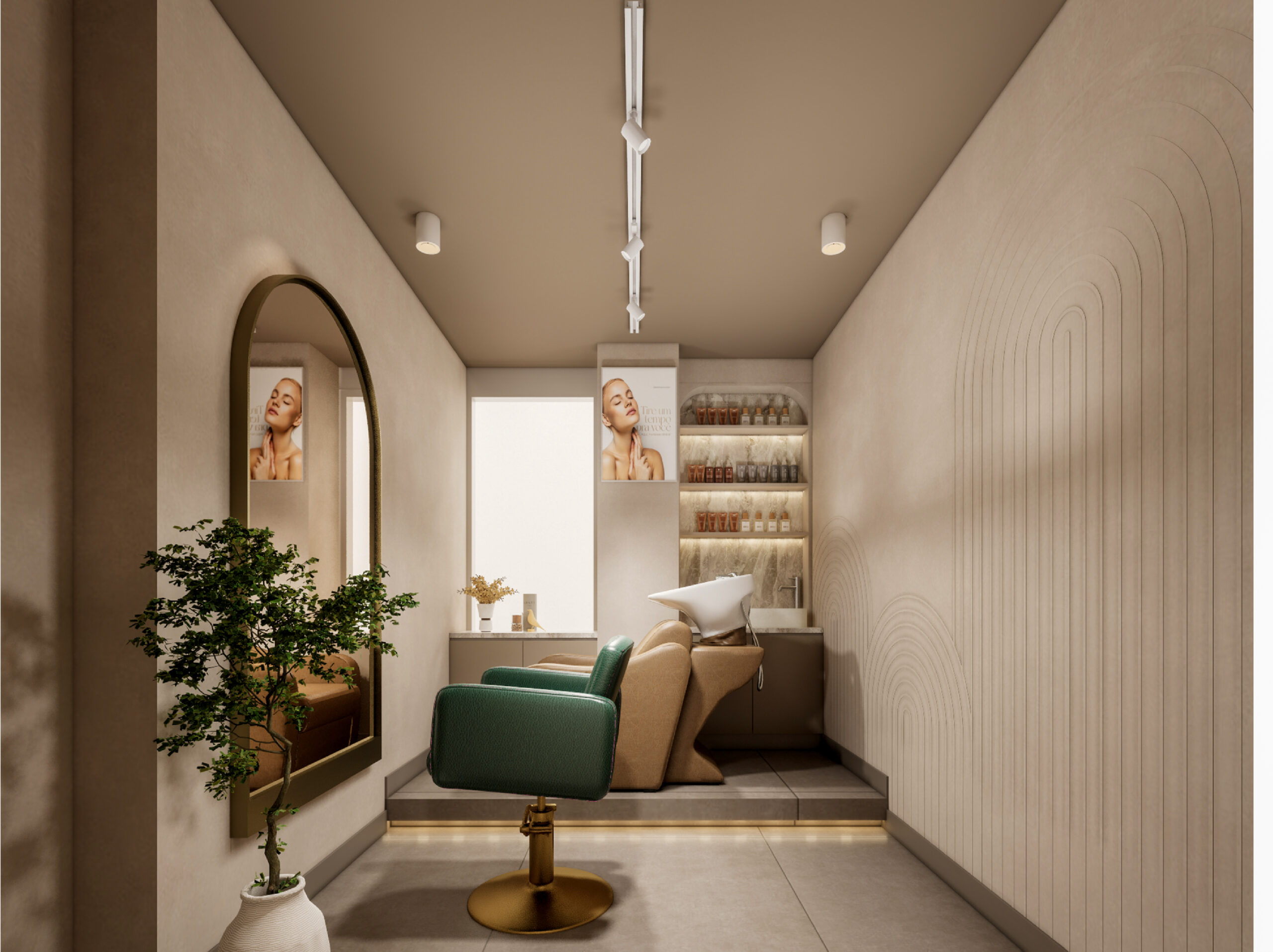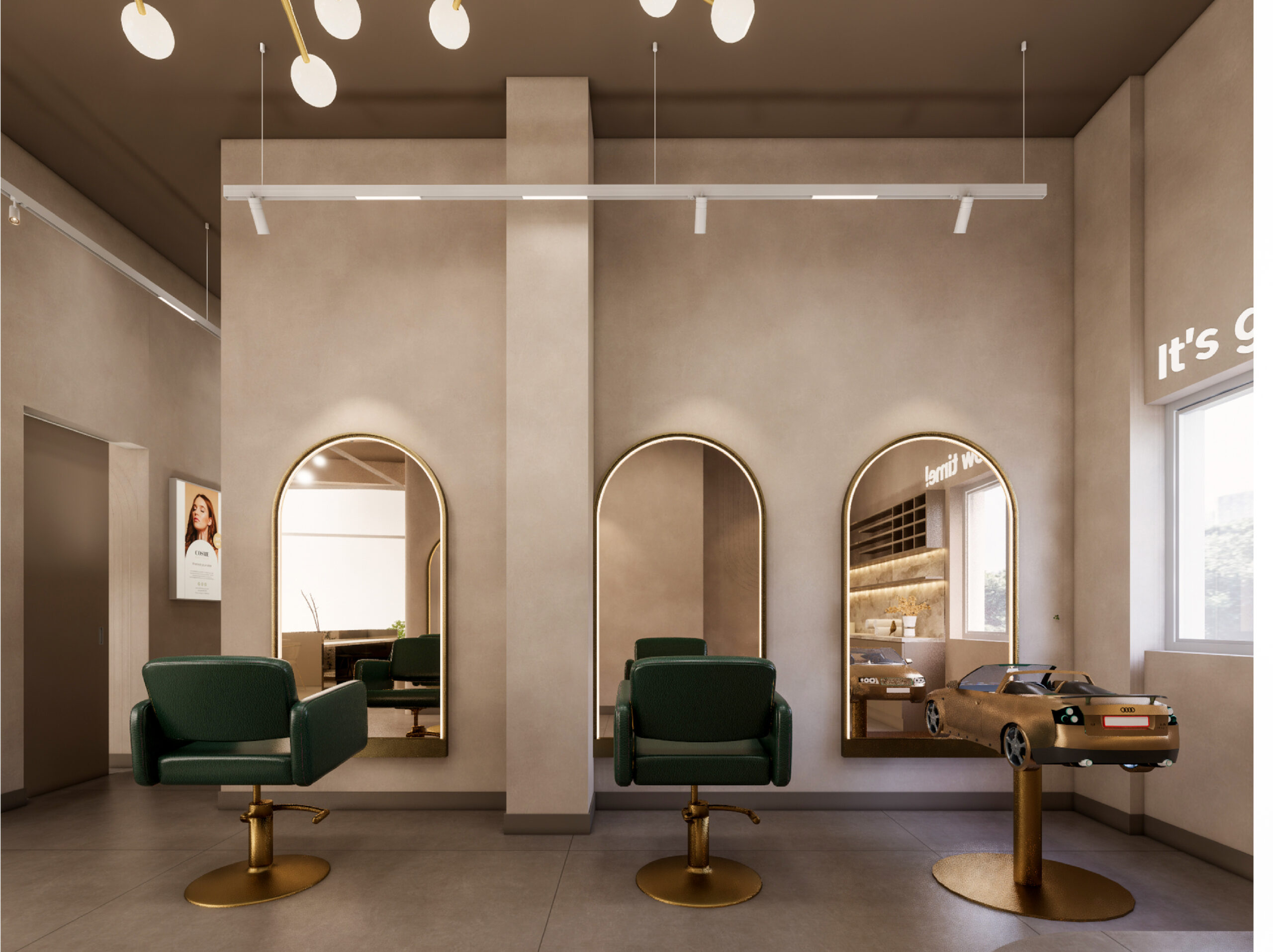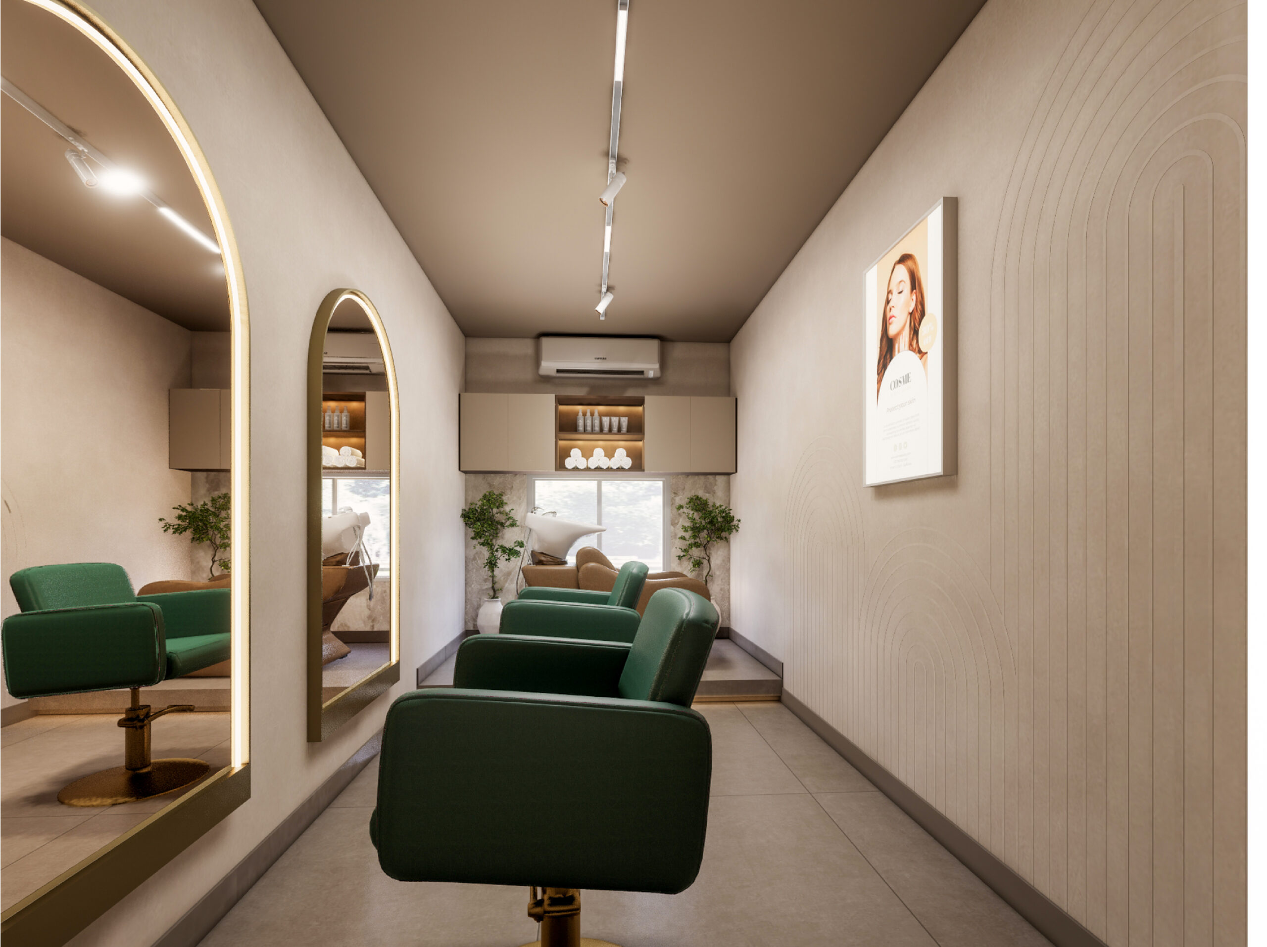 Posh Lounge is designed as a premium unisex salon that blends modern luxury with calm sophistication. The space is envisioned to offer a refined, comfortable grooming experience while maintaining strong brand identity and operational efficiency.