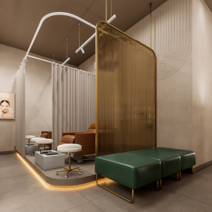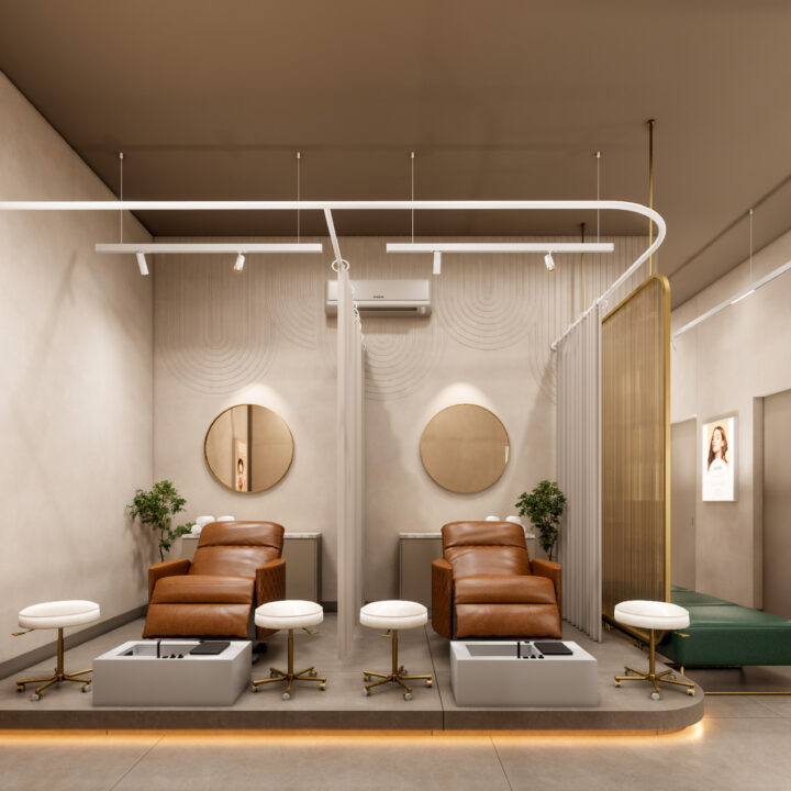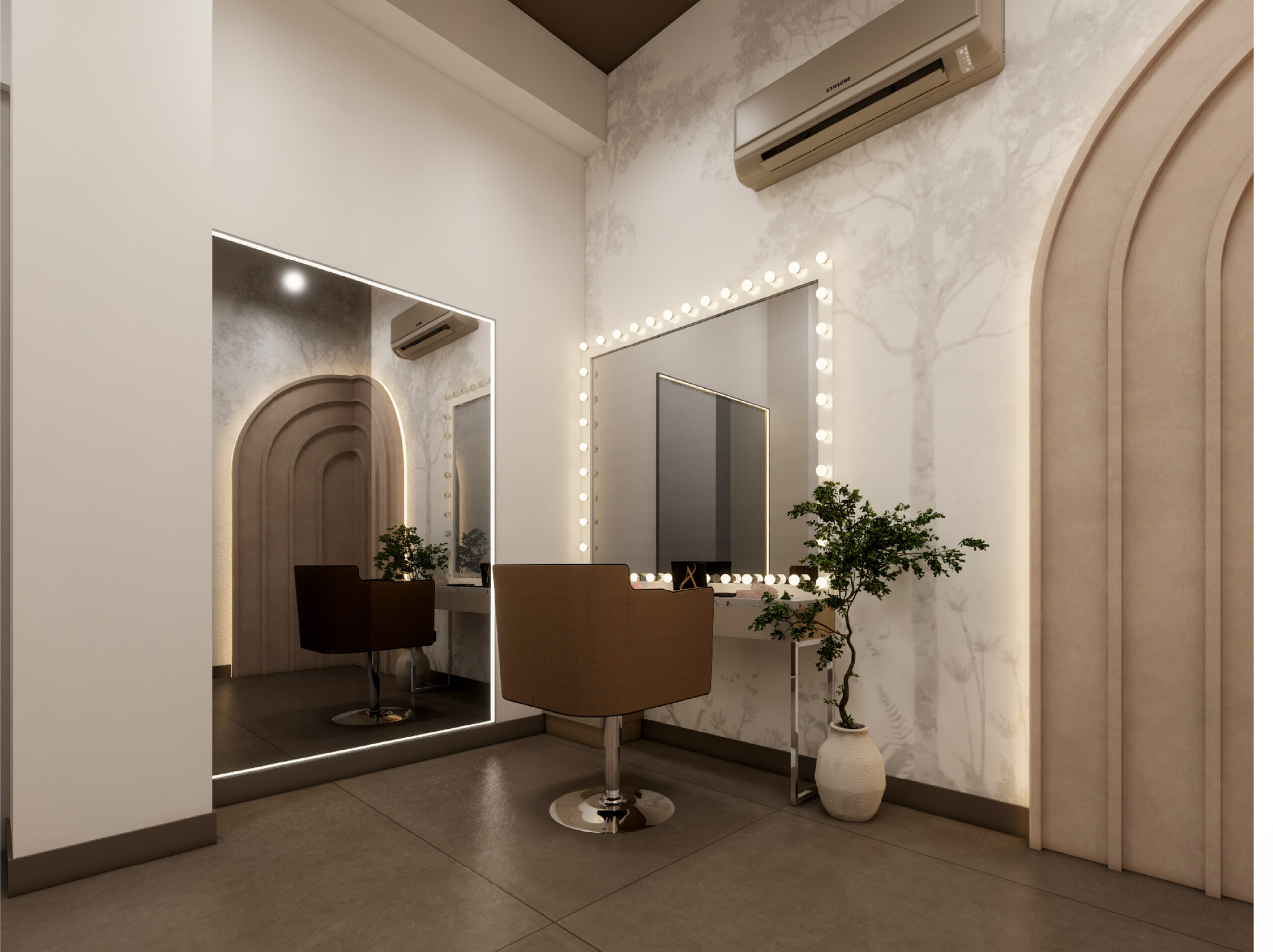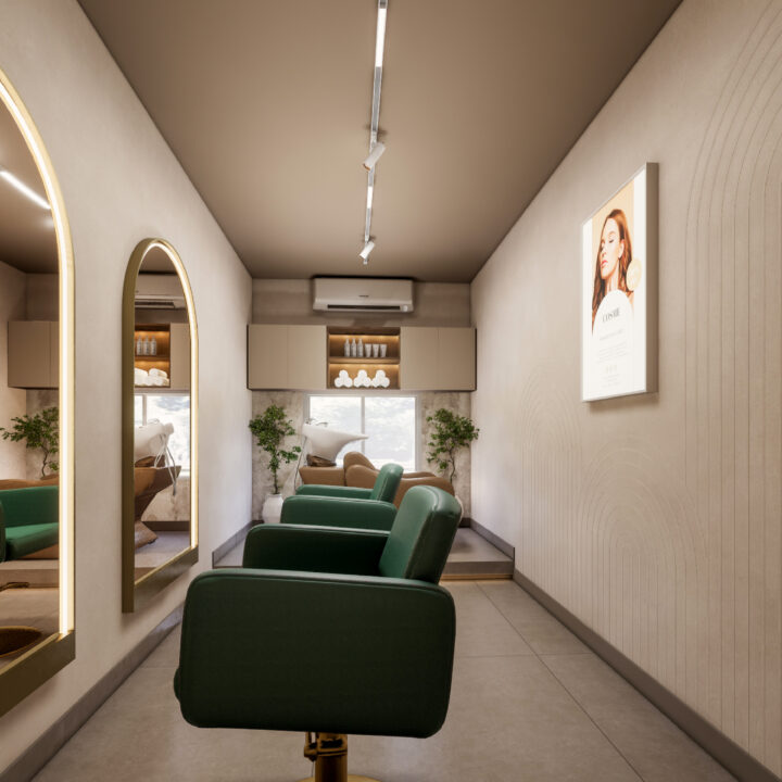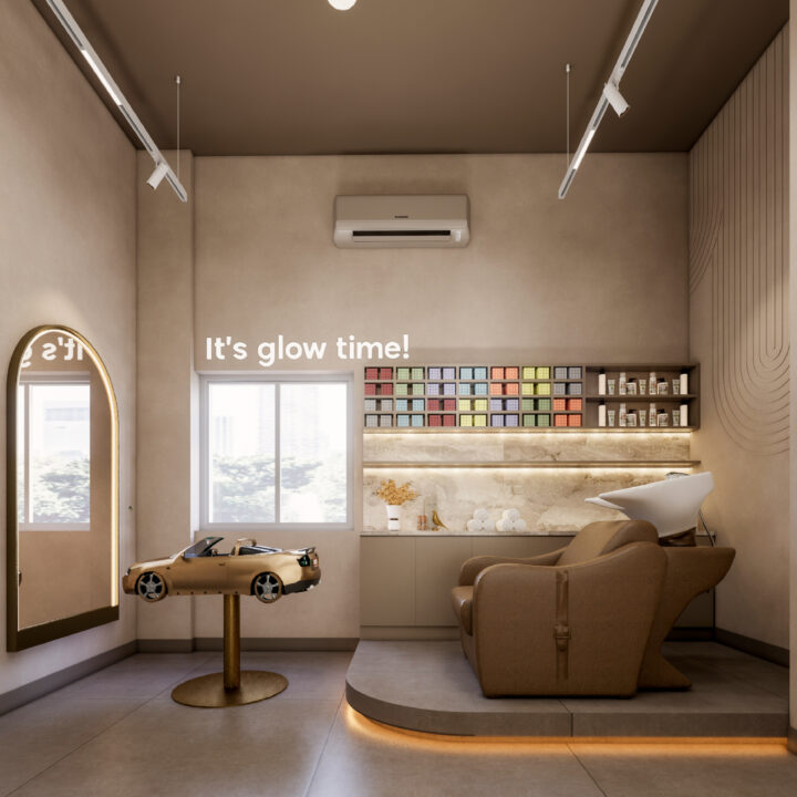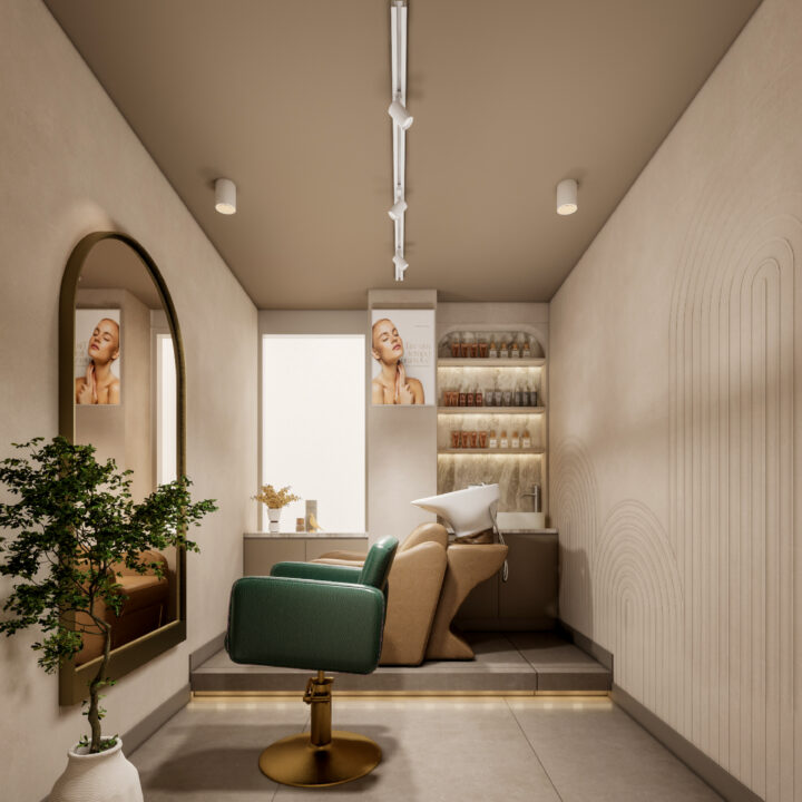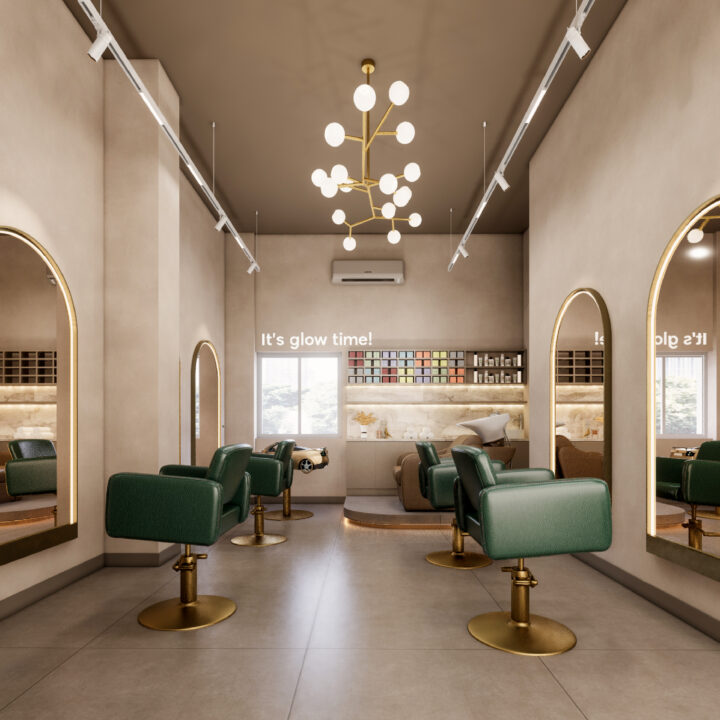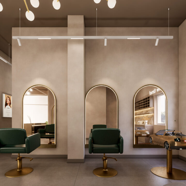 Posh Lounge is designed as a premium unisex salon that blends modern luxury with calm sophistication. The space is envisioned to offer a refined, comfortable grooming experience while maintaining strong brand identity and operational efficiency.